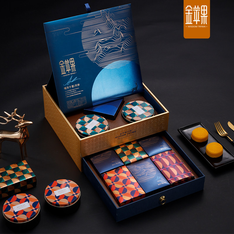 金苹果中秋节礼盒广式双黄白莲蓉豆沙双层礼盒装送礼团购曜月千里热门设计联盟服务商
