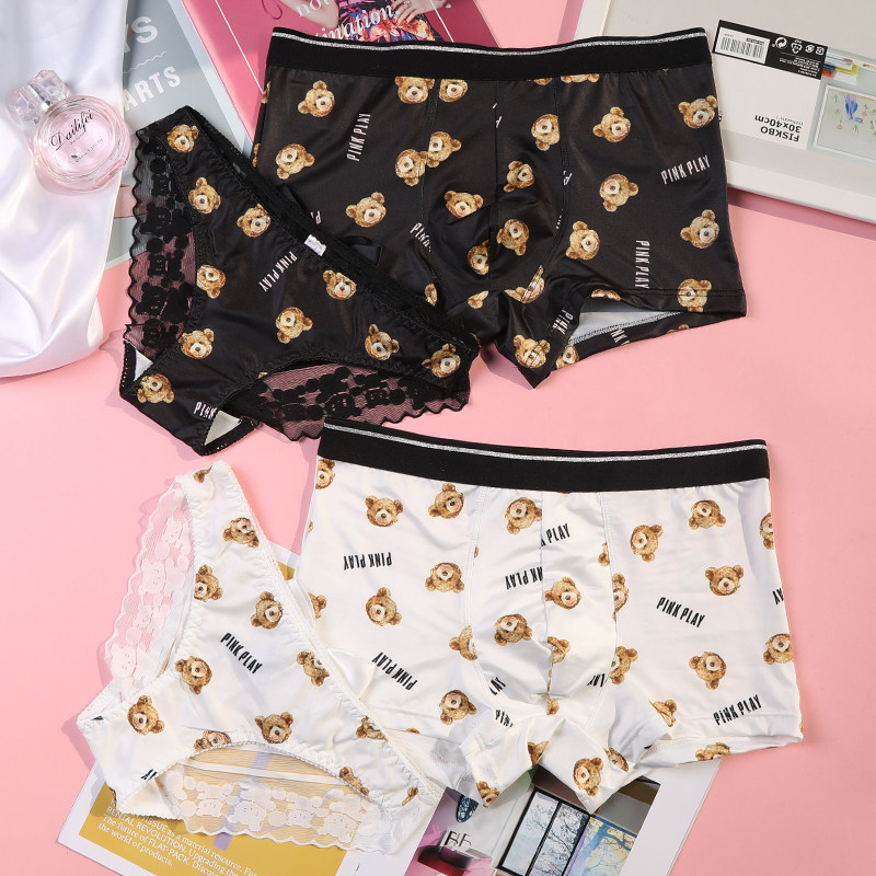 情侣内裤男女小熊卡通性感动漫中腰冰丝蕾丝蝴蝶结印花宽边礼物热门设计联盟服务商