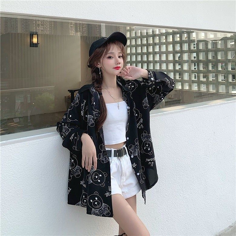 雪纺防晒衣女夏新款宽松设计感小熊印花洋气长袖衬衣薄款外套热门设计联盟服务商