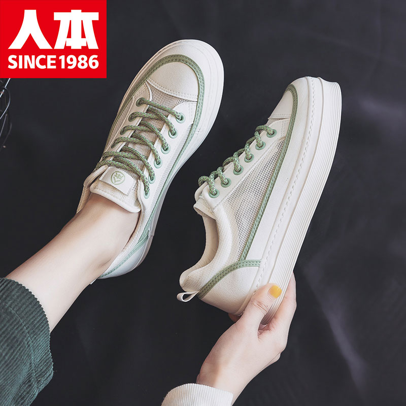 人本网鞋女夏季镂空透气网面厚底小白鞋女2021新款春季款帆布鞋热门设计联盟服务商