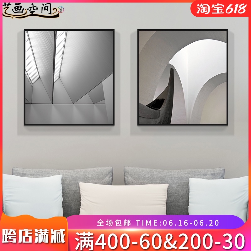 北欧极简建筑挂画抽象黑白客厅装饰画过道墙画酒店办公室书房壁画热门设计联盟服务商
