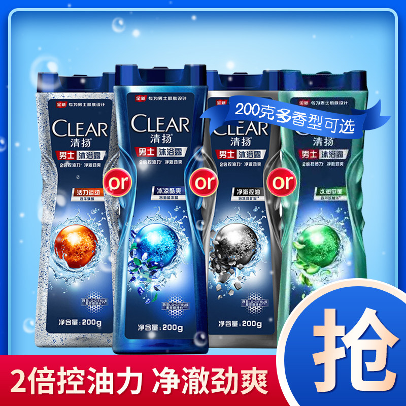 清扬男士冰凉酷爽/净澈控油/活力运动/水润平衡沐浴露净澈劲爽多口味规格选单品200g专为男士肌肤设计热门设计联盟服务商