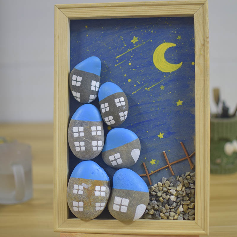 儿童手工创意粘贴环创鹅卵石丙烯石头画幼儿园卡通拼画框艺术成品热门设计联盟服务商