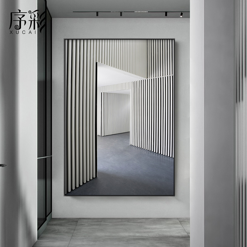 现代简约抽象挂画黑白建筑走廊玄关装饰画办公室客厅沙发背景墙画热门设计联盟服务商