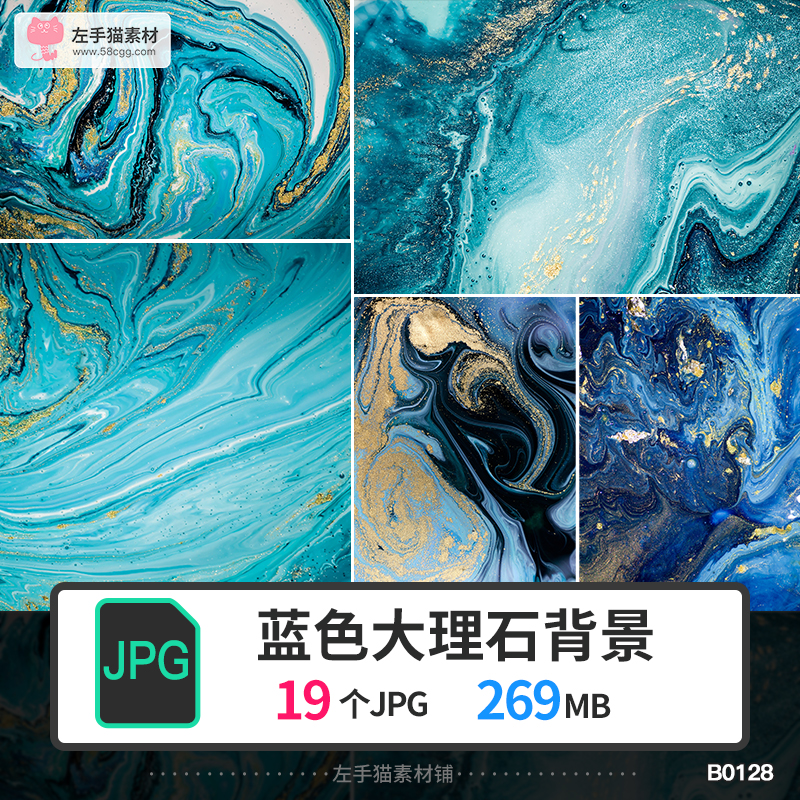 蓝色ins抽象大理石纹理金粉背景设计素材包装平面装饰画高清图片热门设计联盟服务商