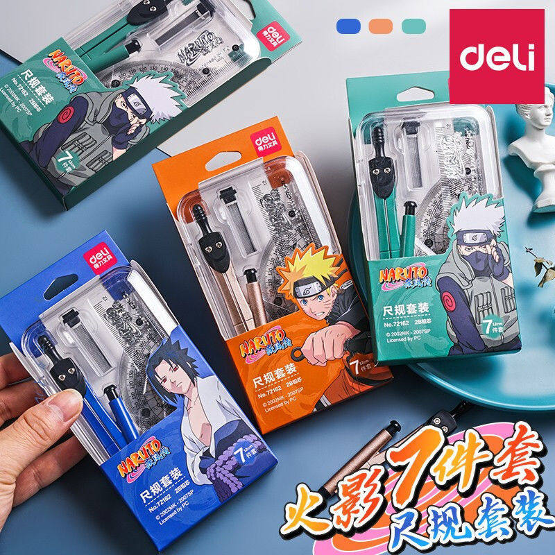 得力火影忍者圆规不锈钢学生7件套金属专业绘图设计圆规套尺套装热门设计联盟服务商