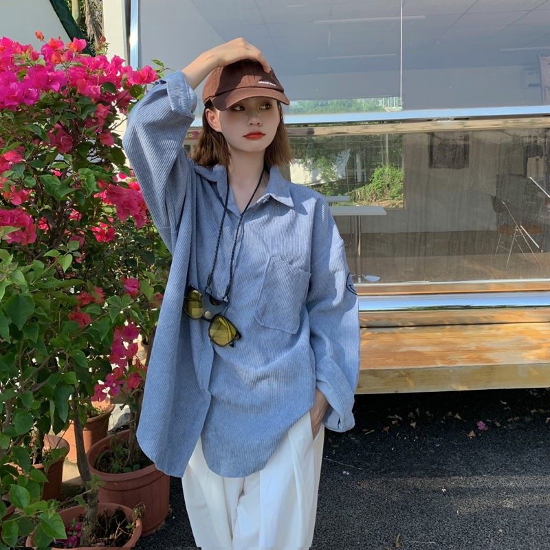 灯芯绒衬衫女设计感小众上衣2021年秋季新款韩版宽松长袖衬衣外套热门设计联盟服务商