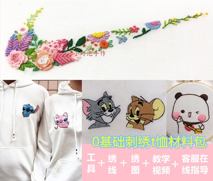 手工刺绣diy自绣花草图标送男友礼物送闺蜜T恤情侣短袖初学材料。热门设计联盟服务商