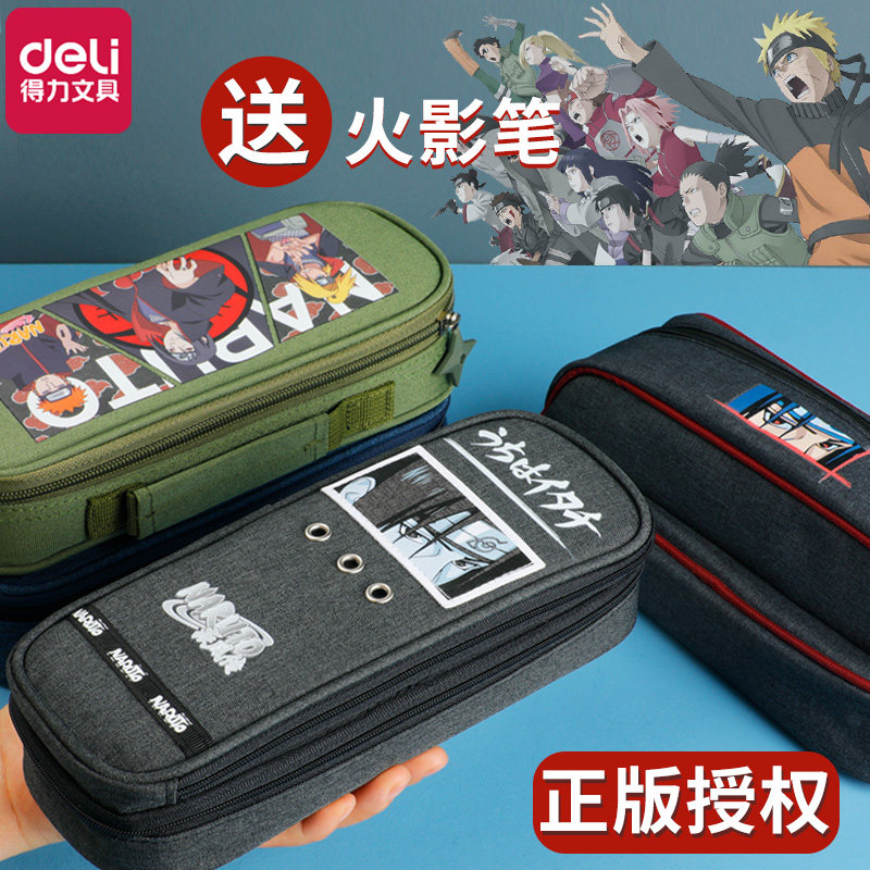 得力火影笔袋大容量帆布多层多规格多功能文具收纳袋简约高颜值日系高级动漫联名限定铅笔袋高中学生儿童笔盒热门设计联盟服务商