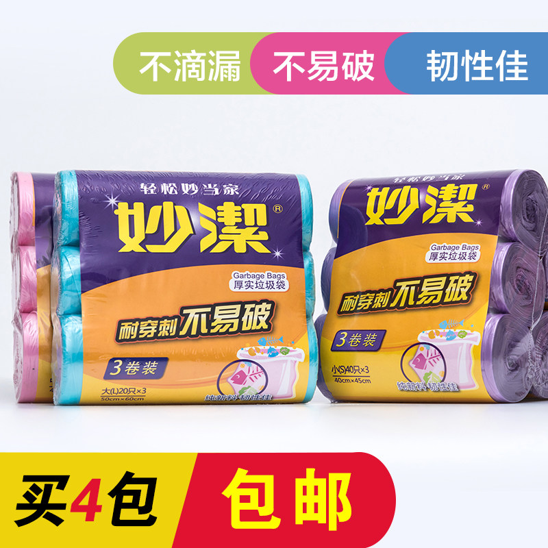 妙洁B型厚实塑料一次性垃圾袋新料加厚平底点断3卷装小中大号团购热门设计联盟服务商