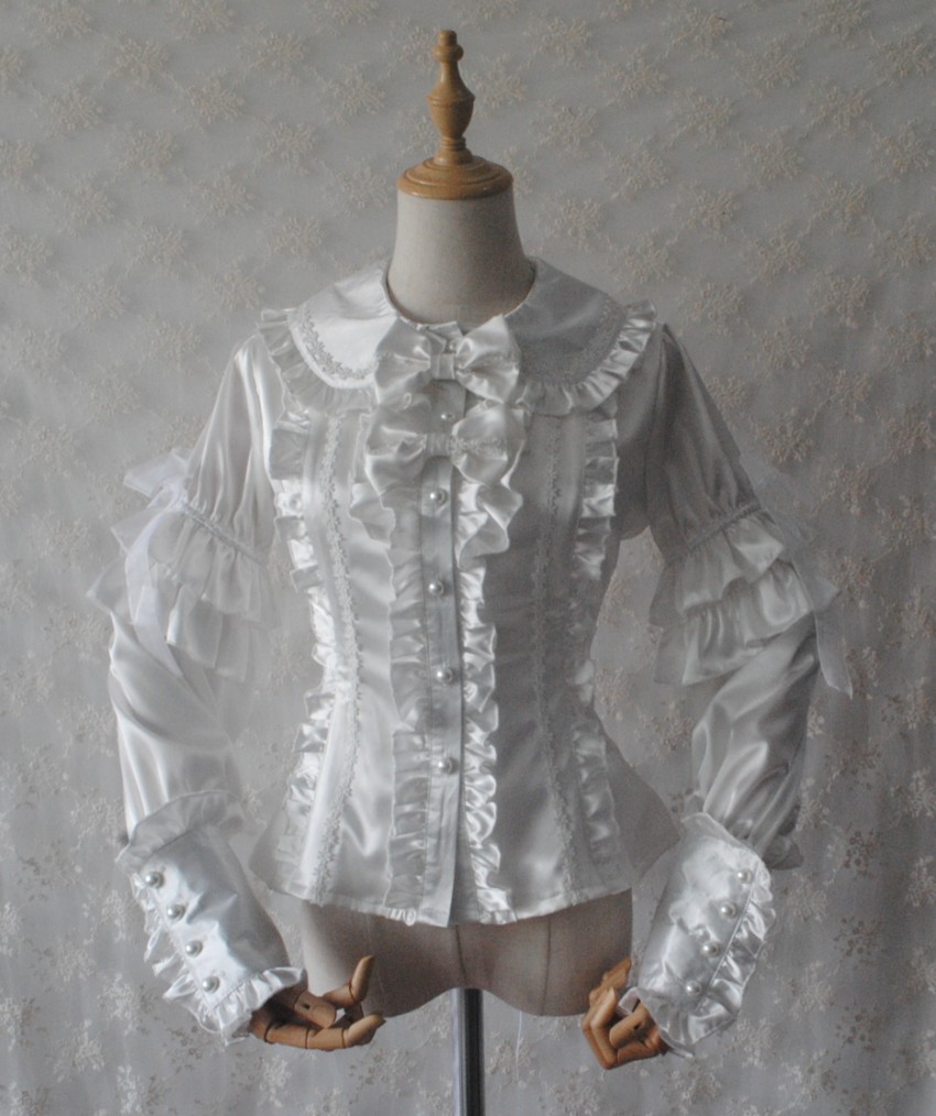 勇顺服饰lolita洋装原创设计秋季华丽蕾丝可爱娃娃领白色长袖衬衫热门设计联盟服务商