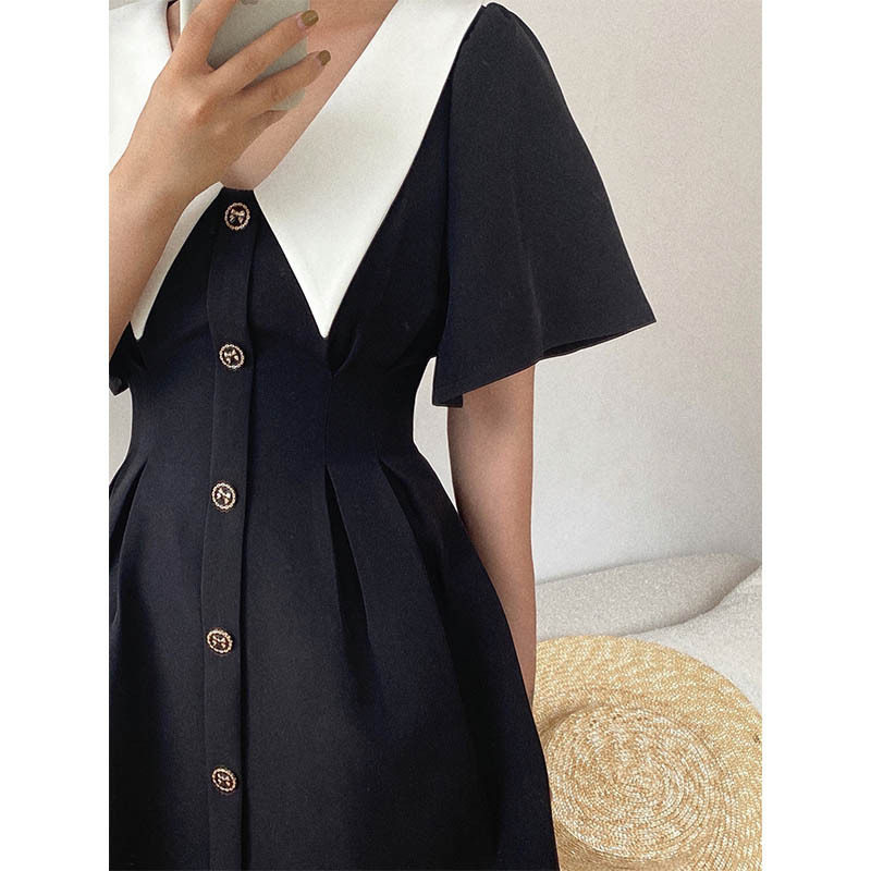 法式设计感甜美娃娃领黑色连衣裙子春款2021年新款女春夏季小黑裙热门设计联盟服务商