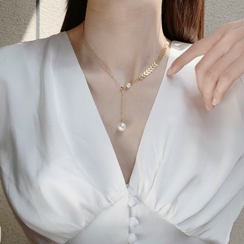 2021年新款麦穗项链女18k金玫瑰金钛钢不掉色设计感珍珠锁骨链夏热门设计联盟服务商