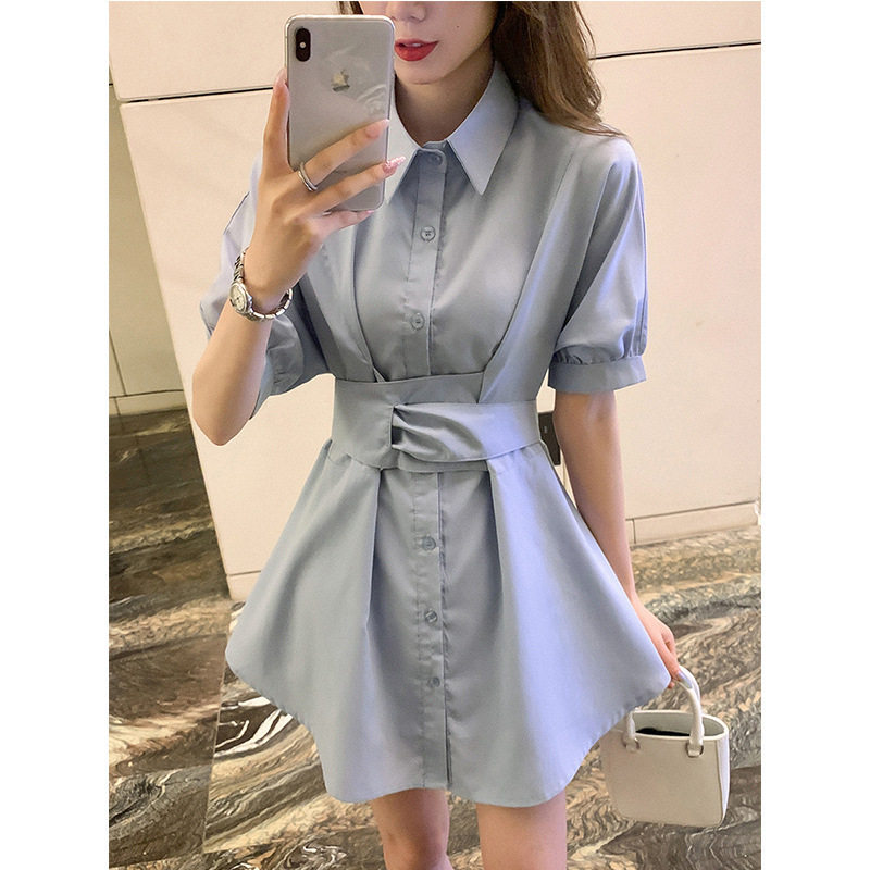 小个子收腰气质衬衫短裙女夏季新款绷带设计感显瘦两件套套装裙热门设计联盟服务商