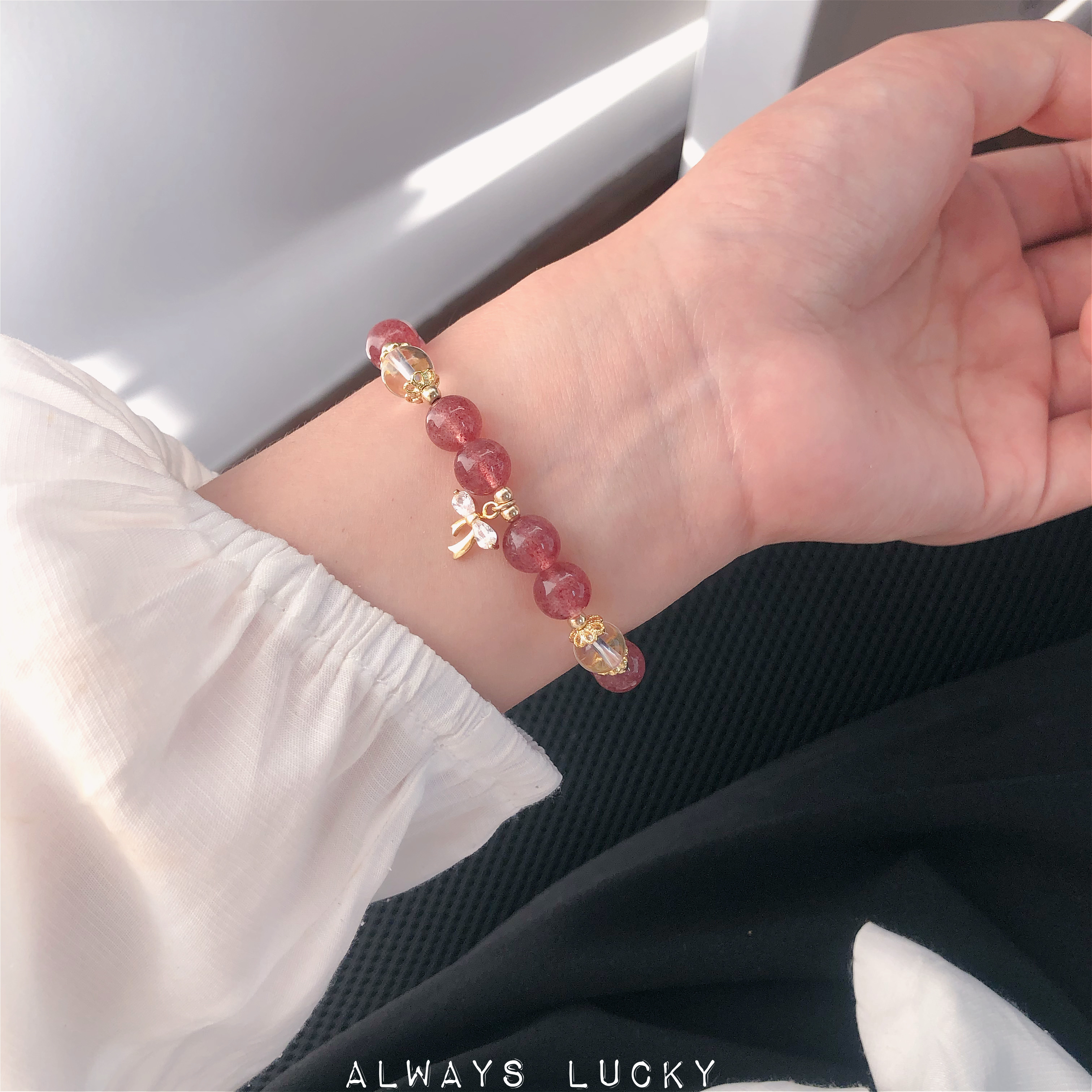 蝴蝶结天然草莓晶招桃花求姻缘转运原创设计水晶手串学生闺蜜手链热门设计联盟服务商